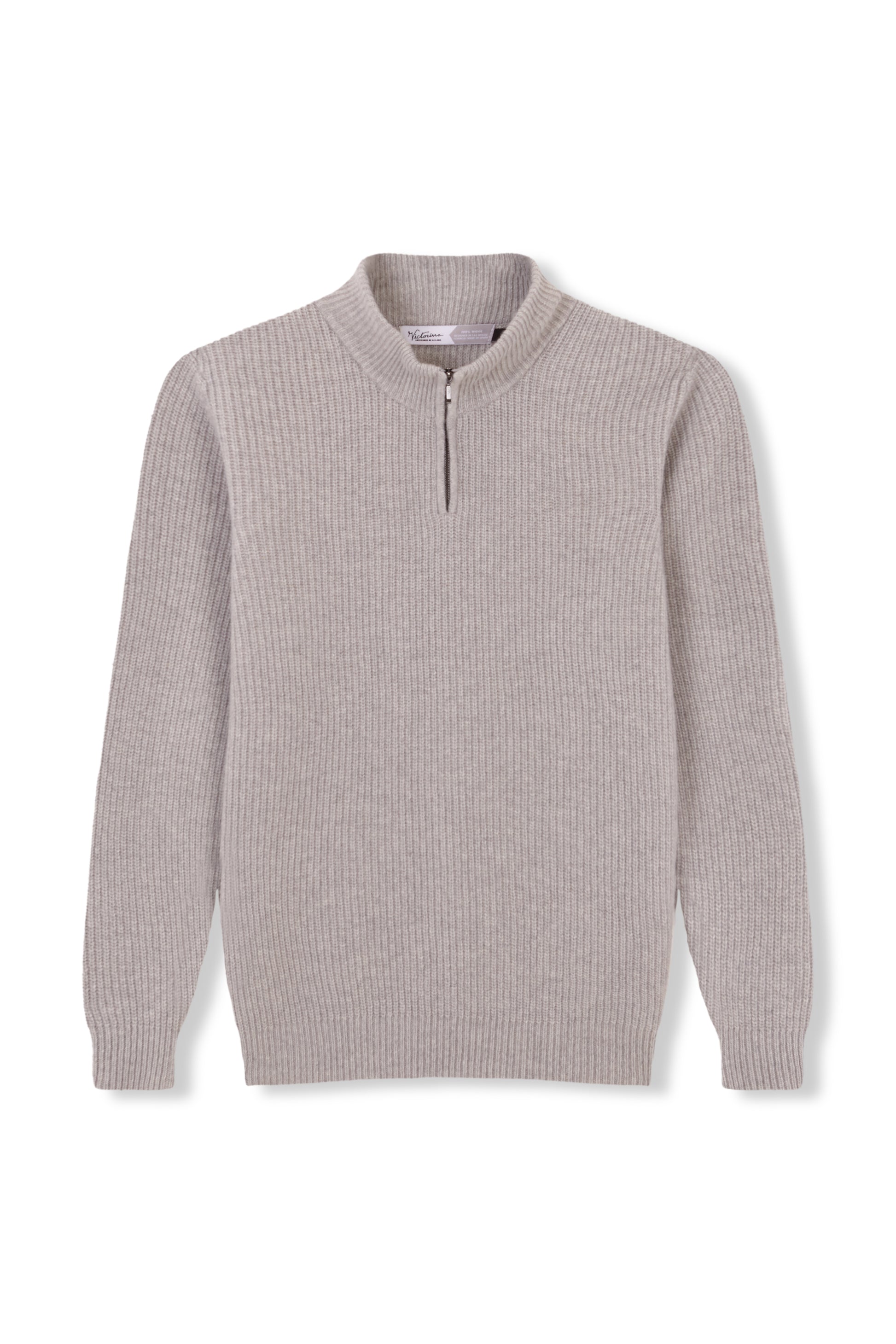 Jersey de punto perlado con cuello alto y media cremallera, confeccionado íntegramente con lana merino de origen italiano. Un diseño versátil que combina calidez, textura y funcionalidad en un sofisticado tono gris.
